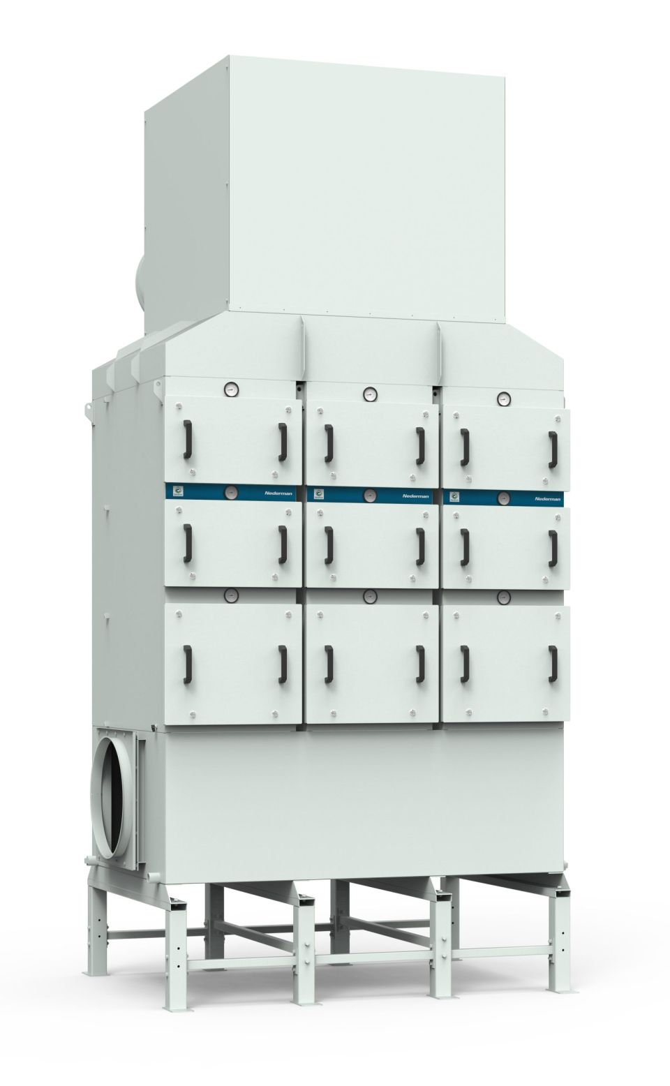 Nederman OSF 3×2000 имеет стандартные три ступени фильтрации, где первые две состоят из фильтровальных кассет с технологией Nederman FibreDrain®. Nederman предлагает широкий модельный ряд фильтров которые подходят для различных условий применения. Третья ступень состоит из HEPA фильтра класса H13 с эффективностью 99,95% для частиц MPPS согласно EN1822. Все корпуса установок Nederman OSF подготовлены для использования предварительного фильтра твердых частиц. OSF 3×2000 имеет встроенный сверху радиальный вентилятор.