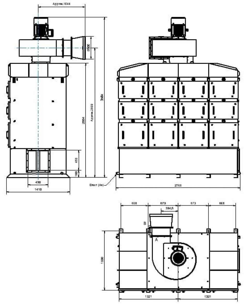 | Уровень шума (дБ(А)) | <70 dB(A) @1,5 m from service side with optional fan enclosure and silencer |