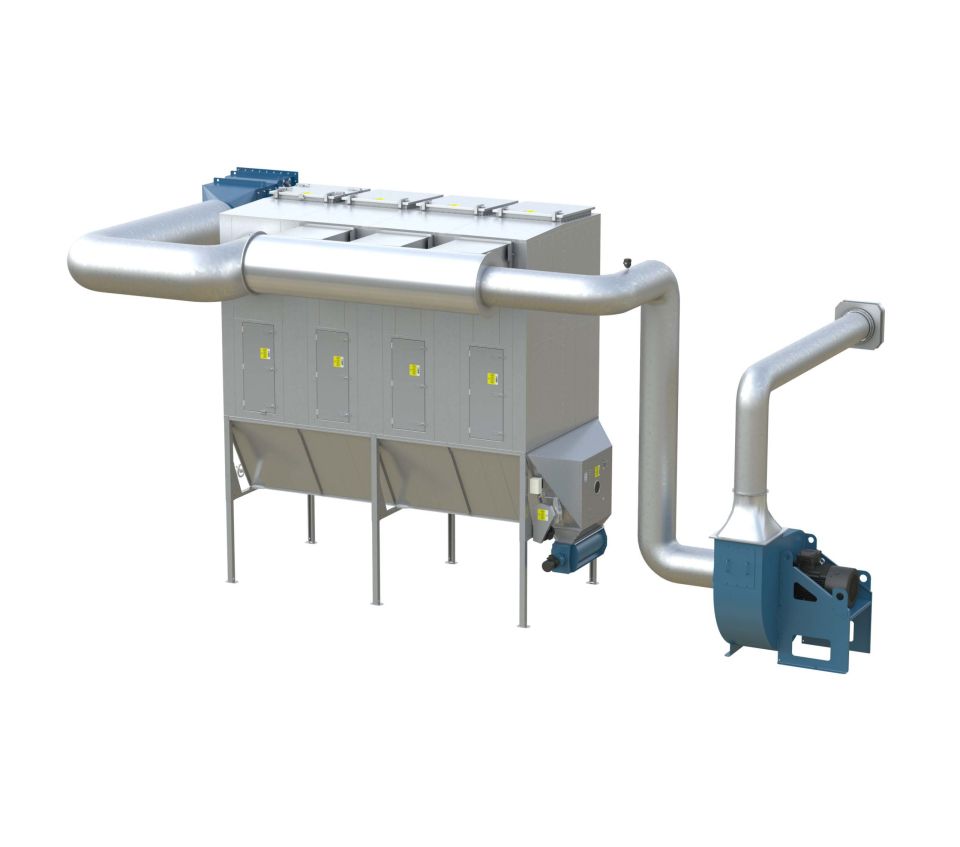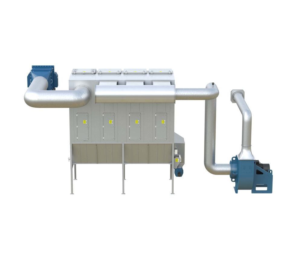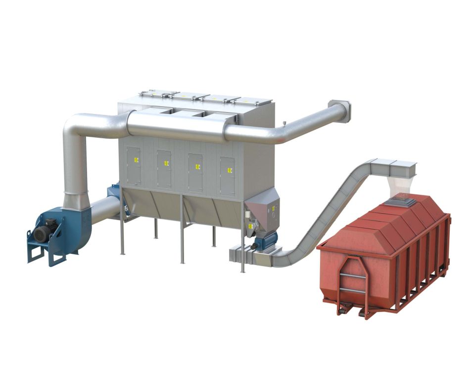 Воздух поступает в фильтр через входной модуль или через бункер, где тяжелые / крупные частицы пыли отделяются из воздушного потока. Оставшиеся мелкие частицы проходят через множество высокоэффективных фильтровальных рукавов типа SUPERBAG, после которых на выходе остается лишь чистый воздух. По мере накопления пыли внутри фильтровальных рукавов, регенерационный вентилятор, расположенный на каждом фильтровальном модуле, продувает воздух в обратном направлении, вытесняя накопленную пыль в бункер, откуда она удаляется цепным конвейером в контейнер или систему транспортировки материала.