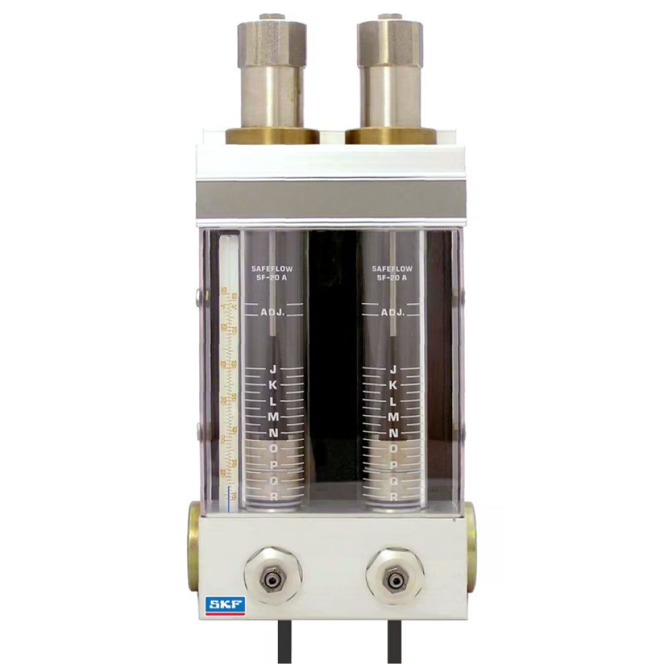 Производительность расходомера SKF Safeflow составляет от 0,04 до 56 л/мин (от 0,08 до 118 пинт/мин) на одну точку смазывания. Расходомеры могут быть сгруппированы в единые блоки (до 10 отдельных расходомеров), что позволяет уменьшить длину трубопроводов и упростить монтаж. Данные расходомеры обеспечивают точную индикацию и наглядный визуальный контроль благодаря своему принципу работы, основанному на использовании стеклянной трубки со встроенными калибровочными конусами.