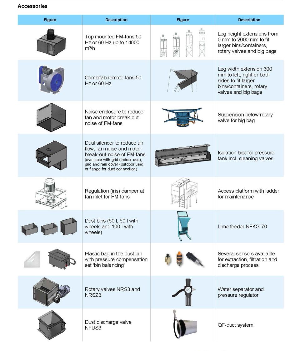 Модульдік дизайн кеңірек қолданбалар үшін дербес блоктармен де, бірнеше бірліктермен де шешімдерге мүмкіндік береді. Жаңа, инновациялық, төртбұрышты дөңгелек сүзгі картриджі дизайны шаң жинағыштың ішкі аймағын оңтайландырып, картридждер арқылы жоғары ауа ағынын қамтамасыз етеді. Бұл құрылғының өлшемін және, тиісінше, оның ізін азайтады.