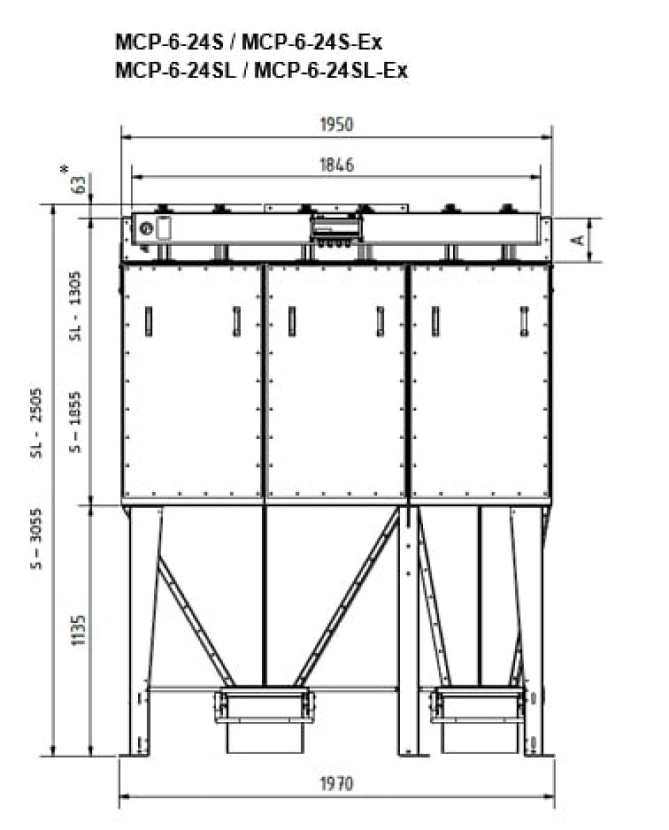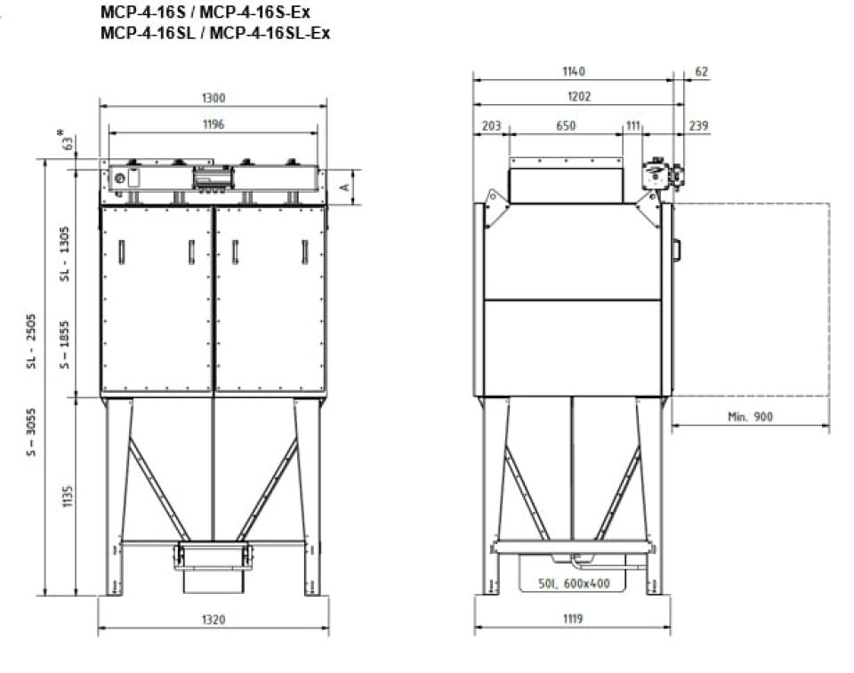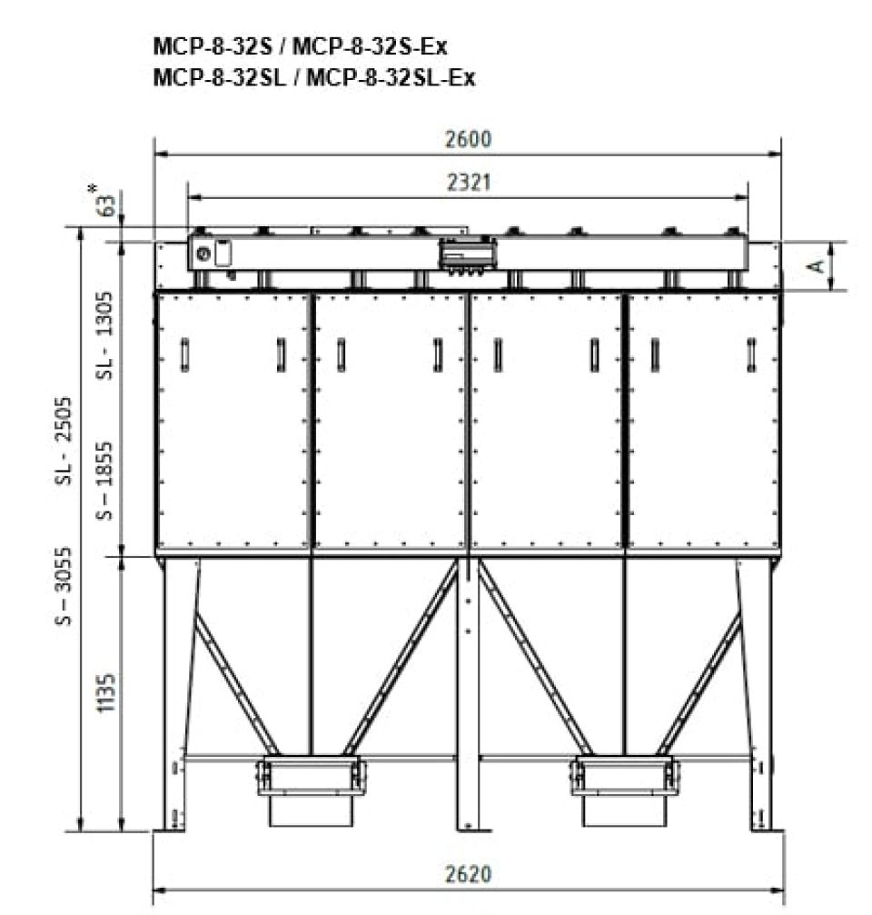 Картриджный фильтр для установки внутри и снаружи помещений. Этот фильтр может применяться в различных типах производств образующих пыль.