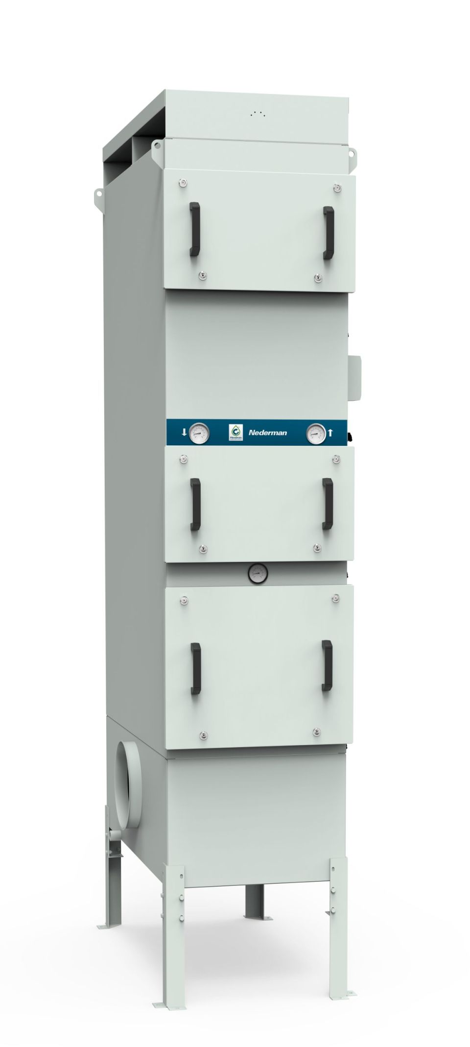 Nederman OSF 2000i имеет стандартные 3 ступени фильтрации, в которых первые 2 ступени состоят из фильтрующих кассет с технологией FibreDrain ® от Nederman. Nederman имеет широкий спектр фильтров различных типов, подходящих для различных приложений. Третья ступень состоит из фильтра HEPA в классе фильтров H13 с КПД 99,95% для MPPS согласно EN1822. Все построенные на башне блоки Nederman OSF подготовлены для установки предварительного фильтра. OSF 2000i имеет 2 встроенных радиальных вентилятора.