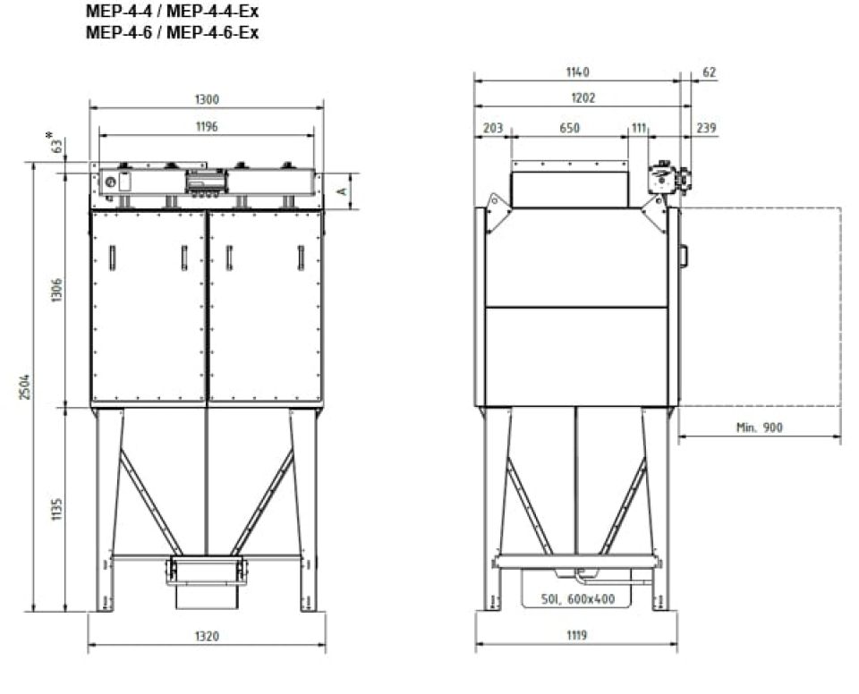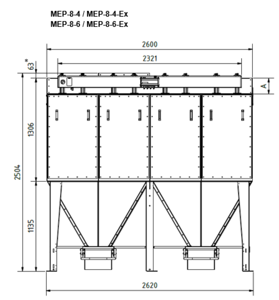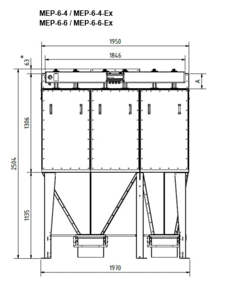 Модульная конструкция предоставляет возможность осуществить решения как с отдельно стоящими установками, так и с большим количеством установок для более широких задач. В пылеуловителе MEP используется наши проверенные временем тканевые фильтровальные рукава, которые легко обслуживать через двери на петлях с фронтальной стороны.