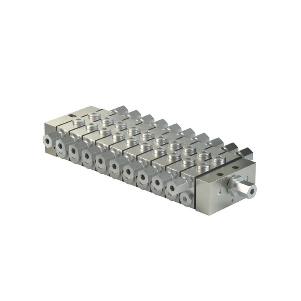 -             Для последовательных систем смазыванияVP — это сегментное дозирующее устройство. Его дозирующие сегменты охватывают объём дозирования на выход и цикл от 0,1 см³ (Т-сегмент = 2 выхода) до 1,2 см³ (S-сегмент = 1 выход). Все сегменты (входные, промежуточные, концевые) удерживаются стяжными шпильками. Подающие трубопроводы герметизируются с помощью пластин для закрытия каналов между сегментами. Требуется использование как минимум трёх промежуточных сегментов. Технические характеристики и преимущества - Объёмный расход до 1,0 л/мин (61 дюйм3/мин)