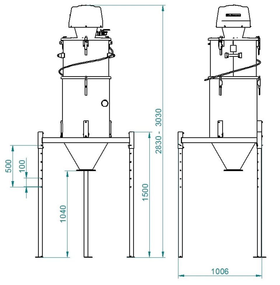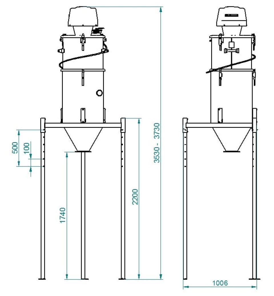 Конфигурация модулей будет аналогична 600А, которые предназначены для самых сложных условий применения, например, для обработки большого количества абразивного и тяжелого материала. Прочность блока и мощность надежного эжектора делают устройство очень подходящим там, где многие промышленные пылесосы не могут быть использованы. Например, для сбора абразива в абразивоструйных камерах, рекуперации песка в литейных цехах и т. д. Ваше устройство может быть настроено в соответствии с вашими конкретными требованиями. В зависимости от спроса могут использоваться различные эжекторы, а также доступность сжатого воздуха. Эжектор можно поместить на стационарный силос с фильтром.