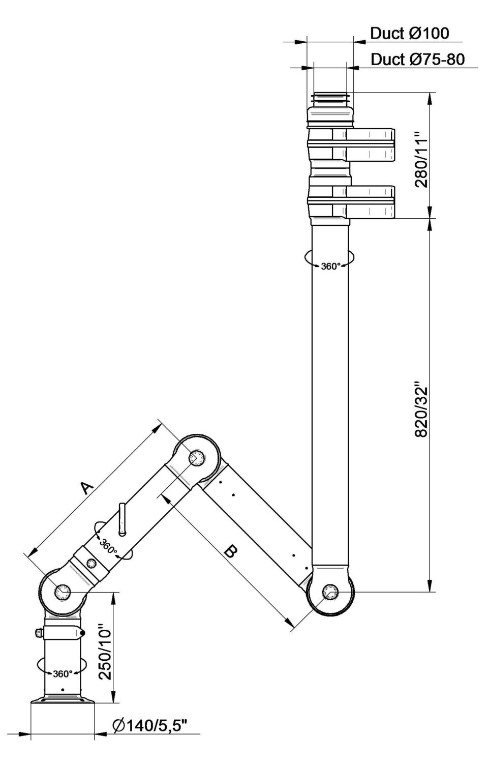 - Два наружных сустава могут вращаться и поворачиваться на 360 °, что дает уникальную маневренность