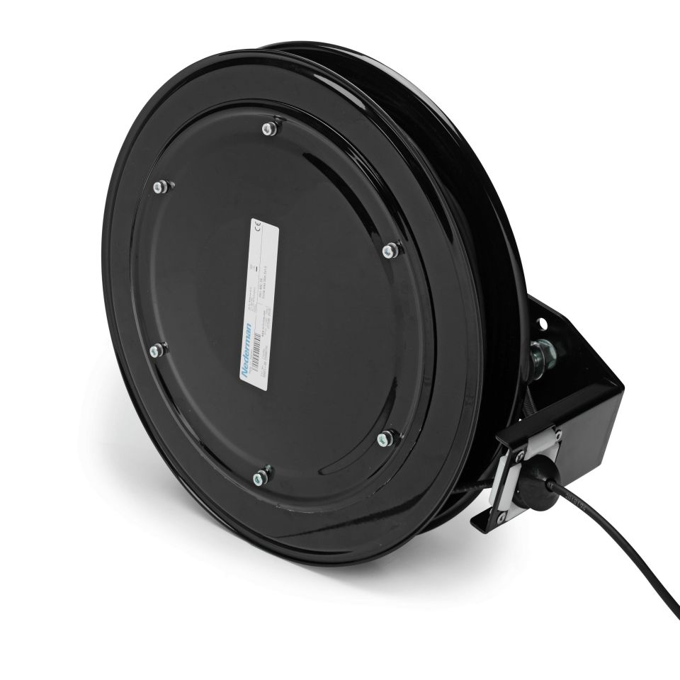 Durable cable reel for professional usage in light industrial applications when signal transmission is needed. The reel is produced in high impact resistant material and has an IP44 classification, which means it is protected from water splashes. Perfect for signal transmission in applications like overfill protection on tankers, crane trucks, camera surveillance and more. The long rubber cable (50 m, 164 ft) make the reel easy to use.