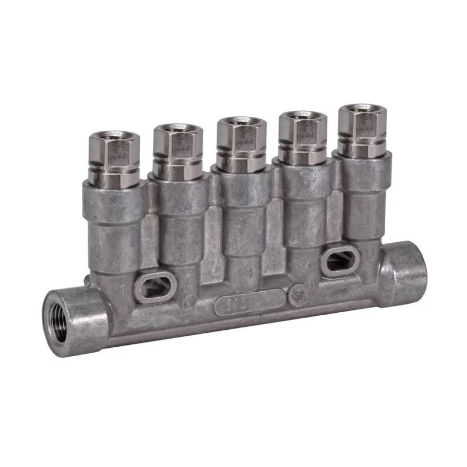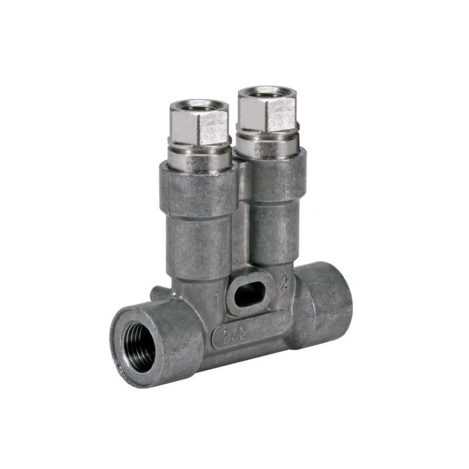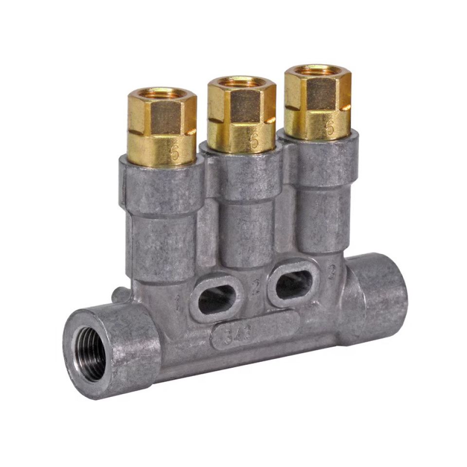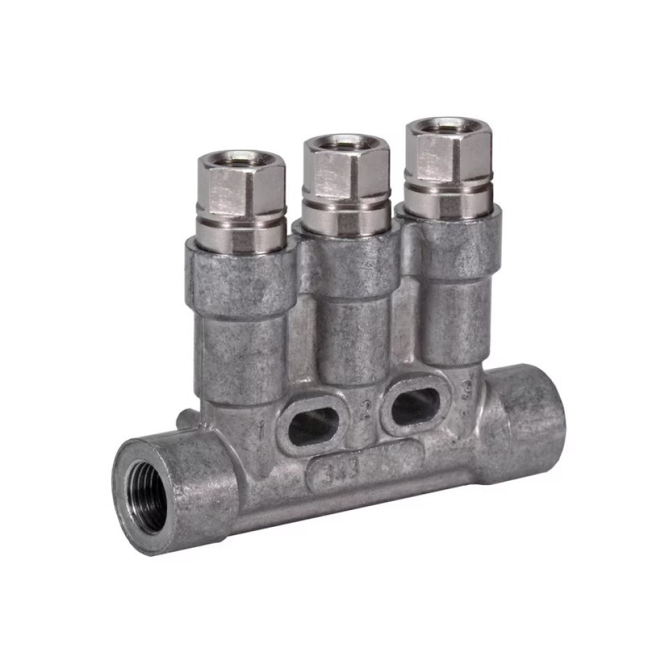 -             Для одномагистральных систем смазыванияДозирующие устройства серии 340 с двумя, тремя и пятью каналами предназначены для одномагистральных централизованных систем смазывания маслом и жидкой смазкой. Эти дозирующие устройства устанавливаются непосредственно на оборудование/систему, требующую смазывания. Дозирующие устройства серии 340 с фитингами для соединения магистрального трубопровода можно заказать, выбрав соответствующий код заказа. Технические характеристики и преимущества - Установка непосредственно на оборудование/систему, требующую смазывания