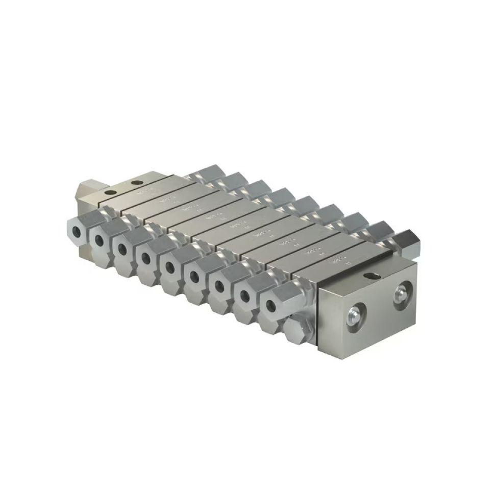 -             Для последовательных систем смазыванияVPK — это сегментное дозирующее устройство. Его дозирующие сегменты охватывают объём дозирования на выходы и цикл от 0,05 см3 (Т-сегмент = 2 выхода) до 0,6 см3 (S-сегмент = 1 выход). Все сегменты (входные, промежуточные, концевые) удерживаются стяжными шпильками. Подающие трубопроводы герметизируются с помощью пластин для закрытия каналов между сегментами. Требуется использование как минимум трёх промежуточных сегментов. Технические характеристики и преимущества - Объёмный расход до 500 см3/мин; 30,5 дюйма3/мин