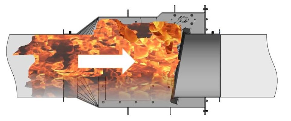 Қалыпты жұмыс кезінде клапан пластинасы кең бұрышта ашық, төмен қысымның жоғалуын қамтамасыз етеді. Сүзгіде жарылыс болған жағдайда, қысым толқыны клапан тақтасын жауып, оны орнына бекітеді. Жабылған кезде пластина жақындап келе жатқан жалынның алдыңғы жағына қарсы тиімді тосқауыл жасайды. Бұл жарылыстың жұмыс аймағына қарай жылжуына жол бермейді. Біз кез келген өндірістік ортада, шаңның кез келген түріне, сүзгі жүйесі мен жарылысқа қарсы клапанның көмегімен шаң жарылыстарынан толық қорғауды қамтамасыз ете аламыз.