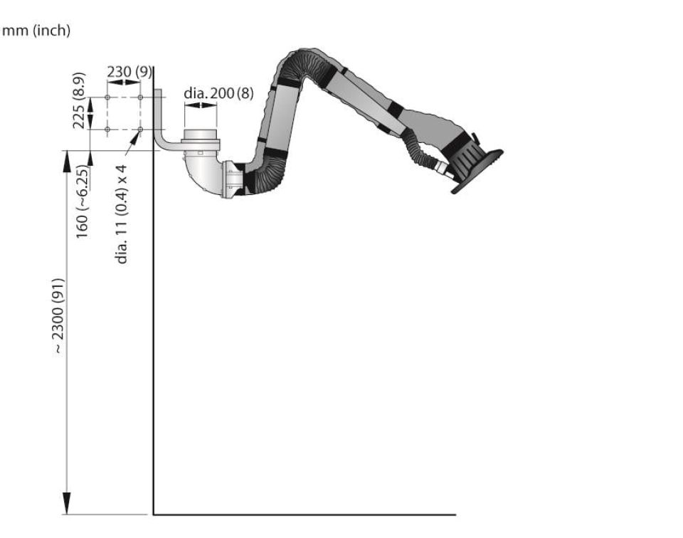 - Рукав поддерживается на жестком поворотном кронштейне и позволяет вращать изделие на 360 градусов
