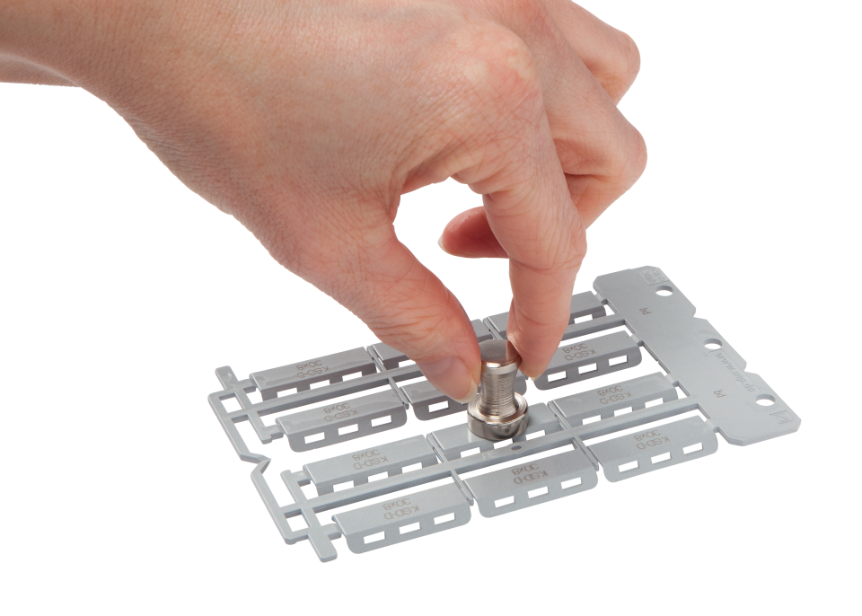 Таблички KSD для дополнительной маркировки максимально плотно прилегают к кабелю. Из-за узкой конструкции таблички кабельные стяжки следует затягивать с усилием не более 50–60 Н/5–6 кг. Поскольку при малых диаметрах кабеля усилия на планках резко возрастают, необходимо соблюдать диапазон применения.