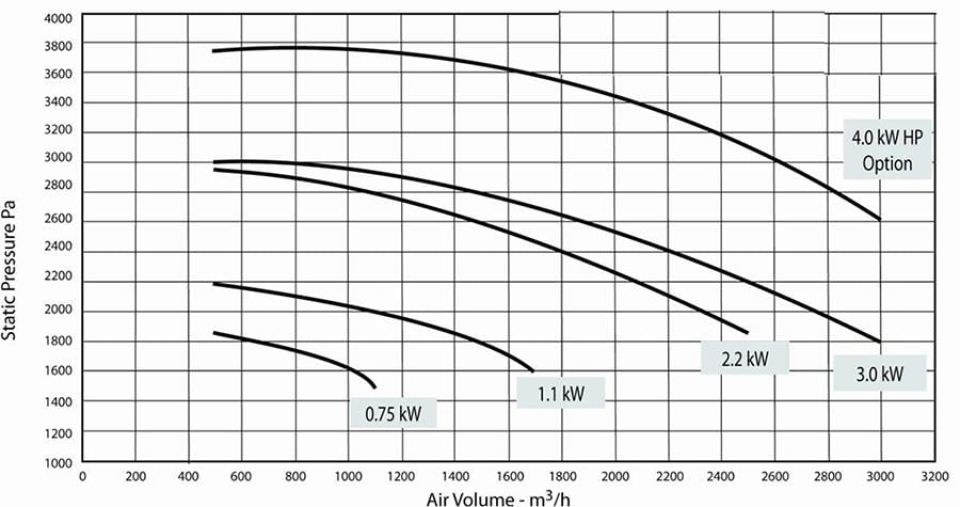 Встроенные вентиляторы с экономией пространства от 0,75 до 3,0 кВт (1-4 часа)