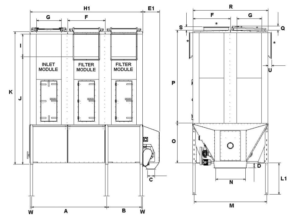 Каждый модуль, 2400 мм (94 «») конструкции фильтра оснащен комбинированной смотровой и взрывозащитной дверью. Очистка фильтра регенерационными вентиляторами. Фильтр оснащен уникальным запатентованным SUPERBAG.