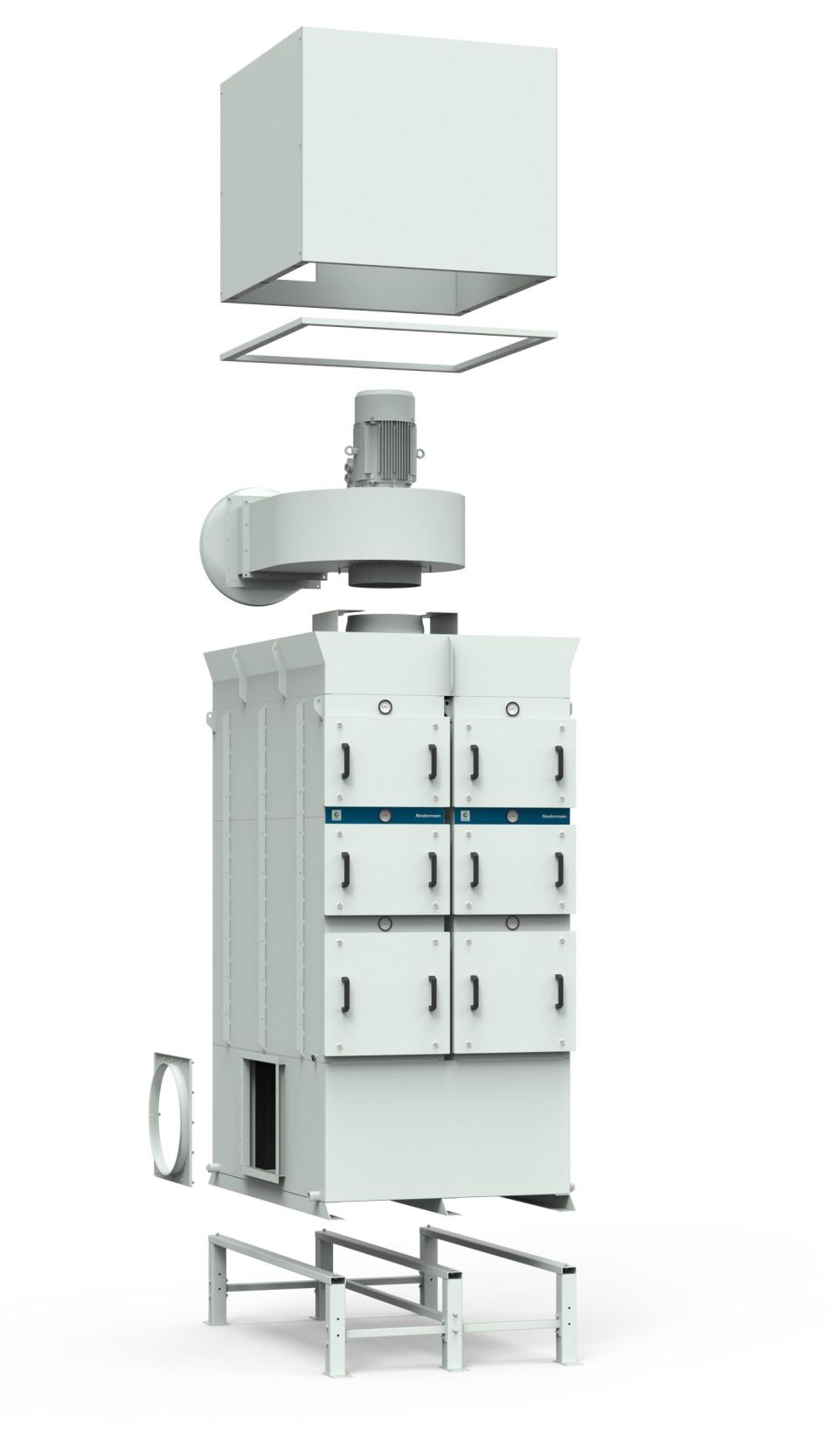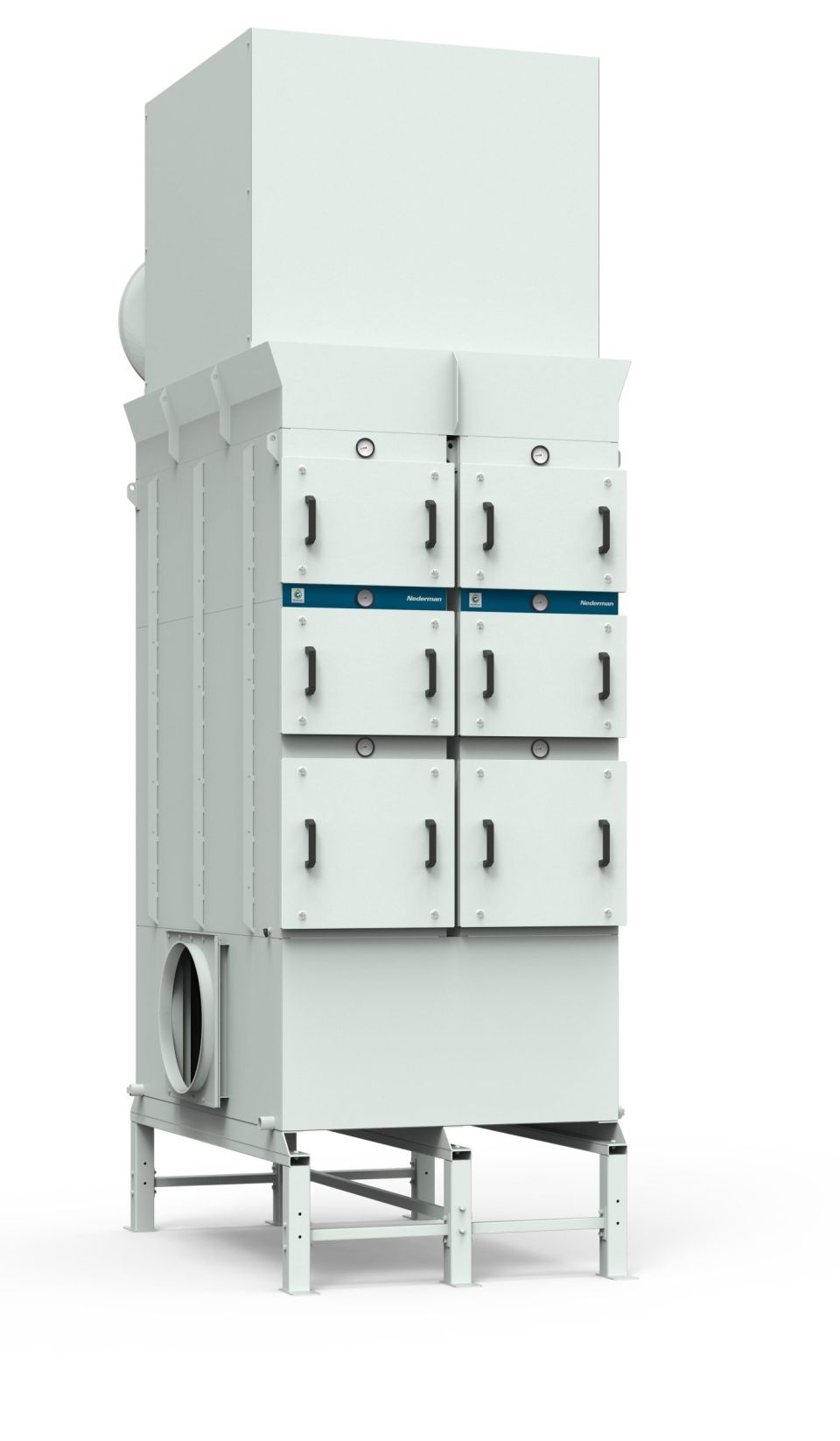 Nederman FibreDrain® OMF 2×6000 has as standard 3 filter-stages where the first 2 stages consists of filter cassettes with Nederman´s FibreDrain® technology. Nederman have a wide range of different types of filters to suit many different kind of applications. The third stage consists of a HEPA filter in filter class H13 with an efficiency of 99,95% for MPPS according to EN1822. All tower built Nederman FibreDrain® OMF units are prepared for use of pre filter. OMF 2×6000 have a top mounted radial fan.