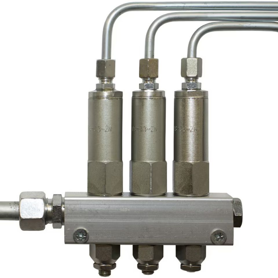 -             For use in single-line lubrication systemsOS series metering devices are intended to be used in single-line lubrication systems with oil. OS-33 is adjustable positive displacement metering device up to 2,8 cm3 per shot and mainly used for heavy conveyor chain and sliding surface applications. For extremely long conveyors OS-4 might be used to have constant adjustable oil flow through entire pressurization time. Both types are often delivering oil via nozzle, brush or felt sold as an accessory. OS-33 and OS-4 metering devices can be installed to same up to six-port manifolds providing flexible system engineering and modifications. Features and benefits - Extends chain and sliding guide lifetime