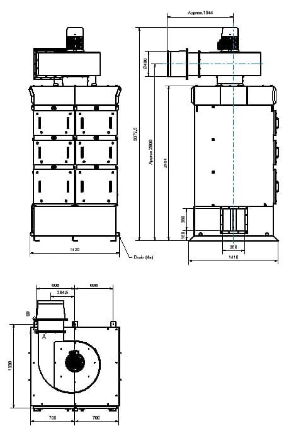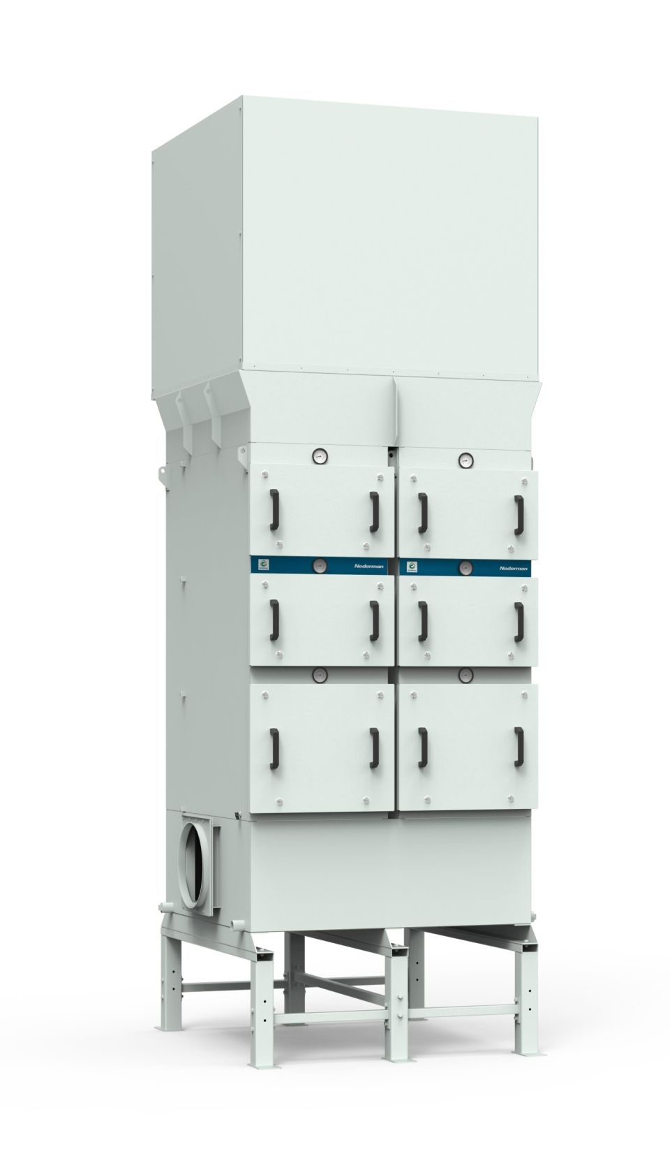 Nederman OSF 2×2000 имеет стандартные три ступени фильтрации, где первые две состоят из фильтровальных кассет с технологией Nederman FibreDrain®. Nederman предлагает широкий модельный ряд фильтров которые подходят для различных условий применения. Третья ступень состоит из HEPA фильтра класса H13 с эффективностью 99,95% для частиц MPPS согласно EN1822. Все корпуса установок Nederman OSF подготовлены для использования предварительного фильтра твердых частиц. OSF 2×2000 имеет встроенный сверху радиальный вентилятор.