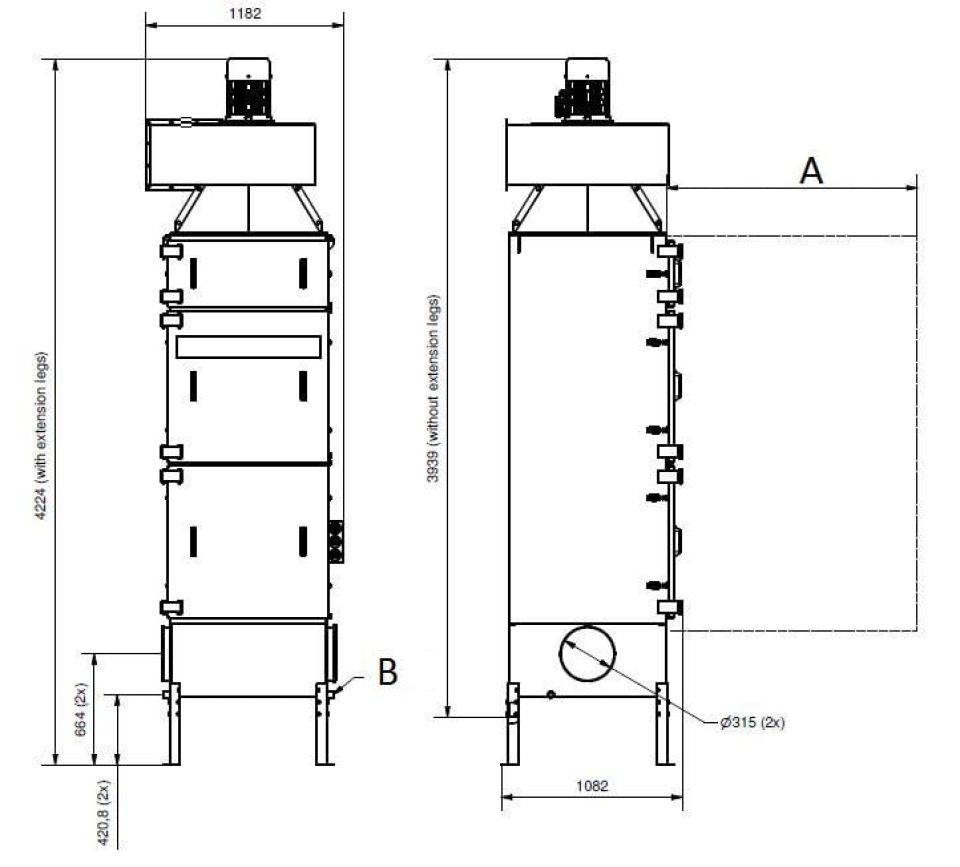 - Два входа ø 315 мм с зажимным кольцом