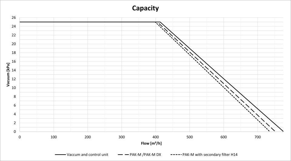 The PAK-M DX is controlled by the VFD as standard but can be upgraded with a separate PLC for enhanced control- and sensor capabilities. The PAK-M DX is developed to fit into normally noise sensitive premises thanks to efficient silencers, acoustic enclosure and using the VFD to run at the lowest possible speed to needed to maintain the desired suction.