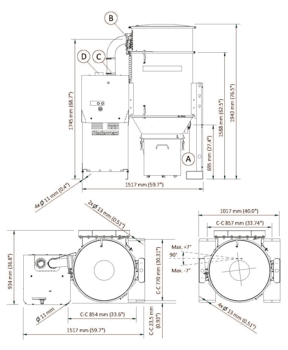- Designed for ATEX applications and built in safety functions including emergency stop, monitored control filter detecting main filter failure and monitored relief/venting system that vents an explosion to a safe area and stops the unit.