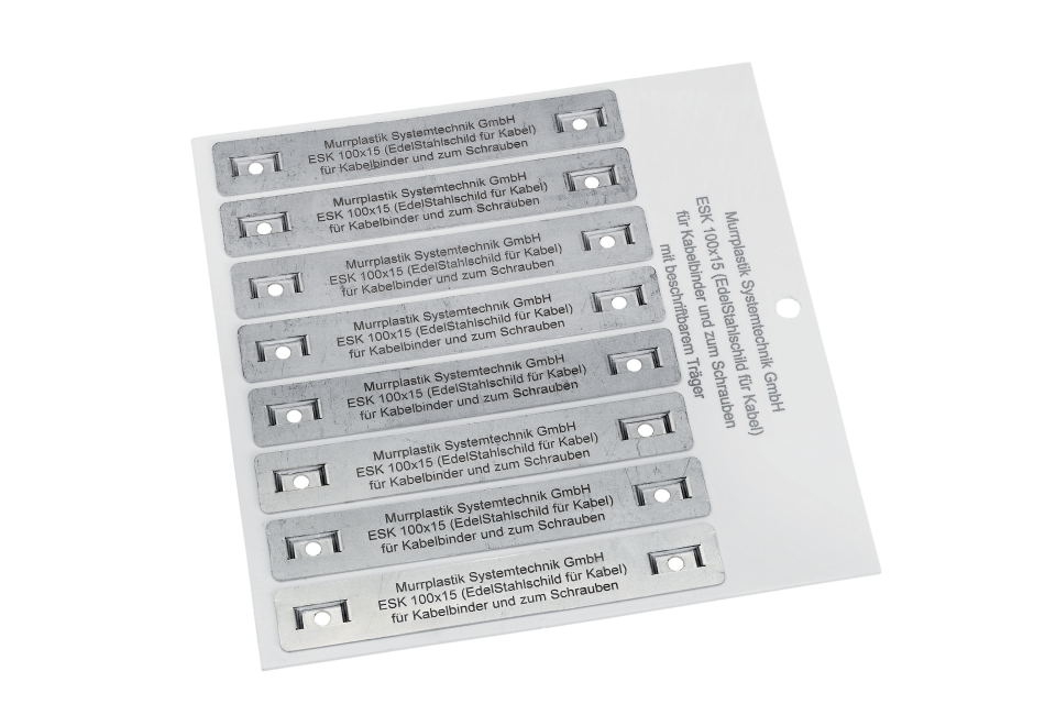 -             Коррозионно-стойкие таблички из нержавеющей стали для маркировки кабелей с толщиной материала 0,5 мм. Крепление осуществляется с помощью кабельных стяжек. Таблички установлены на пластмассовые опоры. Нанесение маркировки возможно только с помощью лазерной системы нанесения маркировки (например, pulsar). Предназначены специально для использования в сложных условиях, как, например, в Химическая и нефтехимическая промышленность горнодобывающей промышленности; судостроении; ветровых установках; пищевой промышленности. Блок вытяжки и фильтрации является обязательным условием для соблюдения правовых норм в области охраны здоровья.Блок вытяжки и фильтрации является обязательным условием для соблюдения правовых норм в области охраны здоровья.