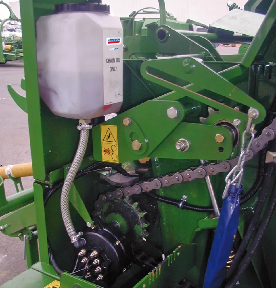 Для такой техники, как пресс-подборщики, во время работы необходимо одновременное смазывание как цепей, так и подшипников. Комбинация насоса для масла (MOS/MOP 212) и насоса для пластичной смазки (MGP 101) представляет собой тип тандемного насоса для обоих типов смазочного материала. Во время работы машины эта комбинация с помощью одной системы позволяет автоматически смазывать цепь маслом, а подшипники — пластичной смазкой.