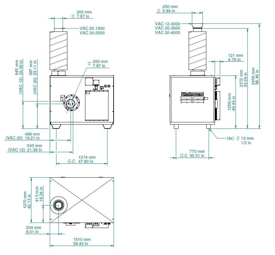 | Өнімділік (макс. ауа ағыны м3/сағ) | «VAC 20-1500, 1500 при 20 кПа VAC 20-2500, 2500 при 20 кПа VAC 20-3000, 3000 при 19 кПа VAC 20-4000, 4000 при 16,5 кПа « |