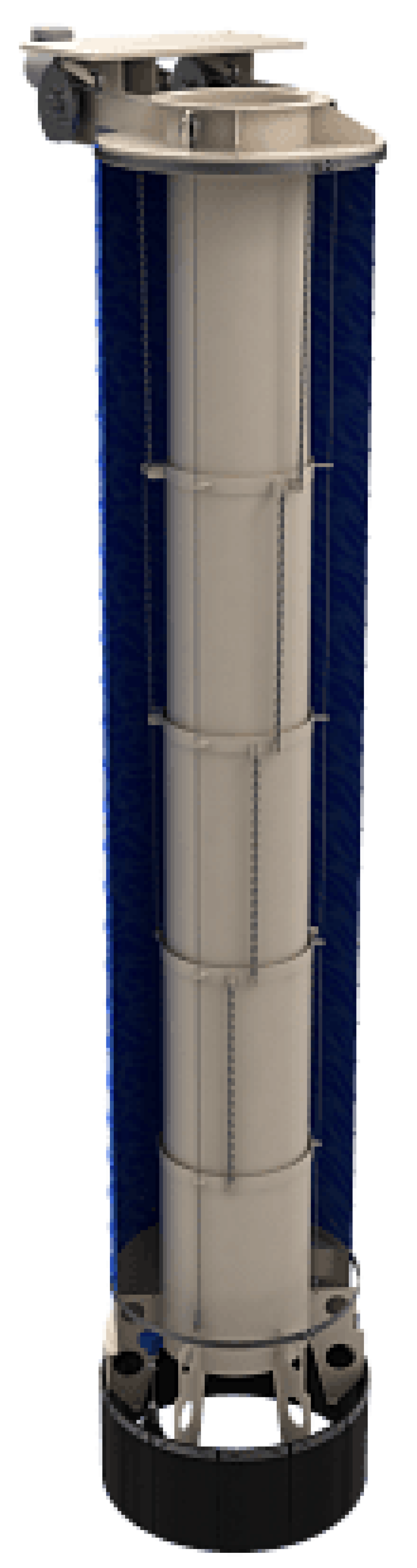 - нижняя часть – пыленепроницаемый колокол, оснащенный резина-тканевыми пластинами, формирующими «юбку», который находится в непрерывном контакте с загружаемым материалом и предотвращает выделение пыли из-под загрузчика. Пыленепроницаемый колокол оснащается датчиками уровня материала, обеспечивающими постепенное поднятие телескопического загрузчика с сохранением постоянного контакта с насыпной кучей материала.