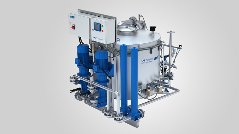 Агрегаты подачи масла SKF Flowline обеспечивают высокоэффективное отделение смазочного материала от воды и воздуха. Цилиндрическим резервуарам из нержавеющей стали обычно необходима лишь треть от объёма традиционных масляных баков. Передовые технологии и уникальный дизайн резервуара SKF позволяют поддерживать состояние масла на высочайшем уровне.