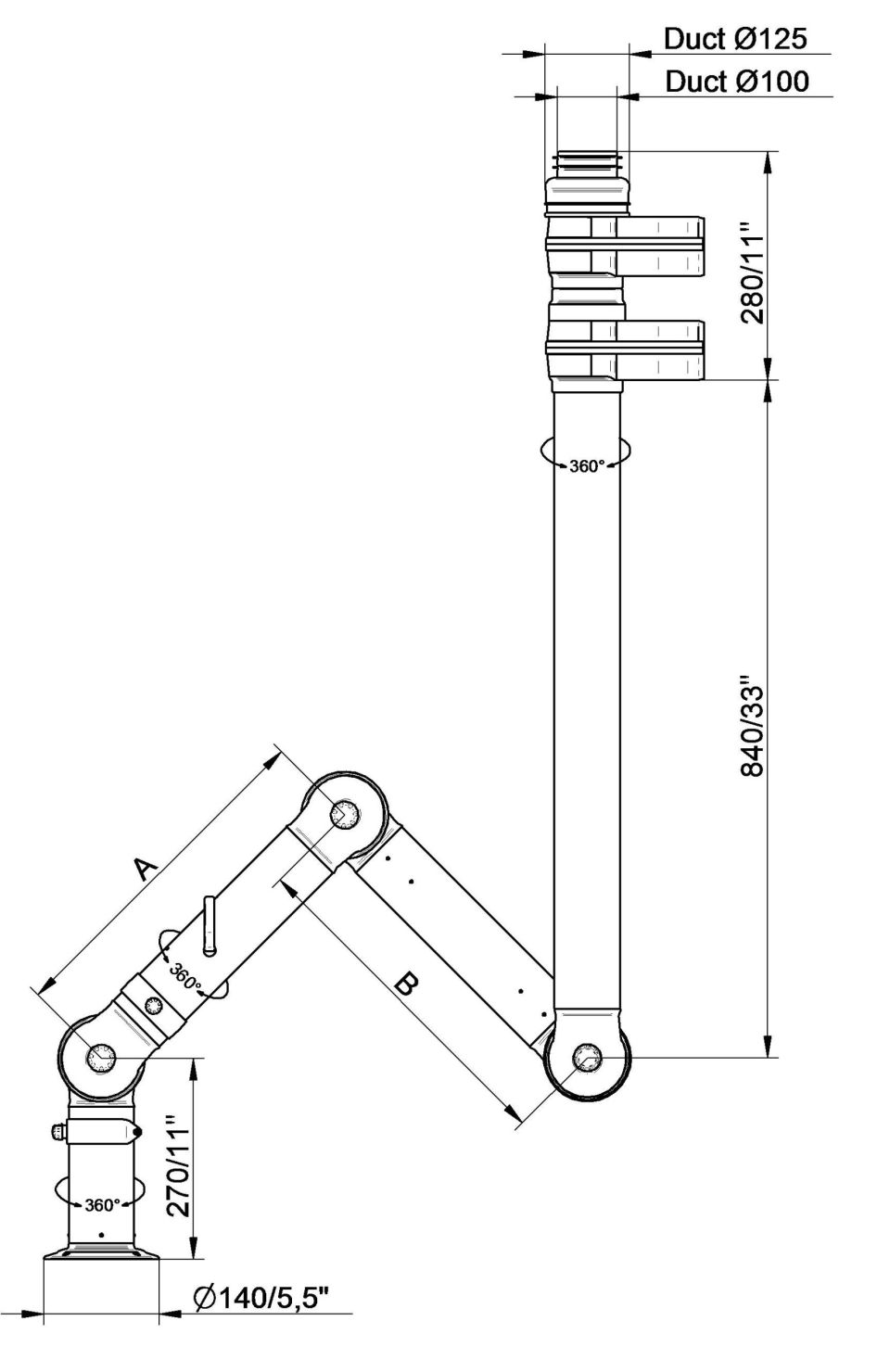 • Два наружных сустава могут вращаться и поворачиваться на 360 °, что дает уникальную маневренность