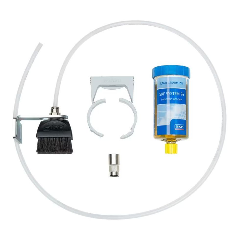 The chain lubrication set LAPB 3/4CK is developed to avoid manual work and efficiently lubricate the needed chain parts. Supplied with SKF chain oil, that withstand the operational conditions of a chain in motion and penetrates the thin clearances between the chain parts. It’s suitable for chain drives working at higher elevations or hard to reach locations.