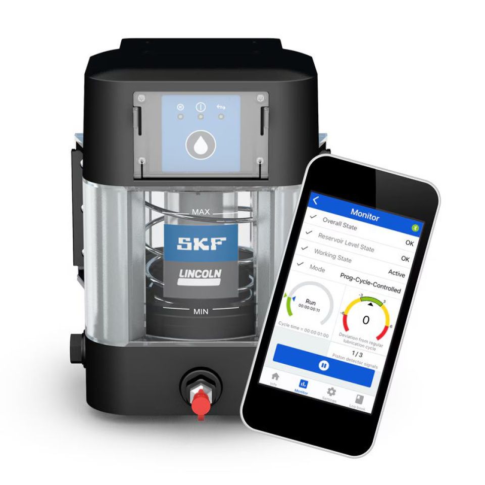 -             For use in progressive lubrication systemsThe CLP Smart pump further extends SKF’s eLube series of products. Users can determine lubricant levels and pump functions remotely via SKF’s eLube App. There is no need to stop the machine or physically access the pump in order to check lubricant levels, for instance. This can save time and also reduce the risk of accidents. Wireless access to pump information helps to spot problems – such as a blocked line or low lubricant levels – very quickly. Users can take remedial action immediately to avoid damage to the bearing. In the case of machine failure, an equipment owner can quickly check whether malfunction warnings have been adhered to. While the pump works well as a standalone product, its full performance is only enabled by the App. By offering three operation modes (time, counter and progressive cycle controlled), CLP Smart pumps provide need-based lubrication for any application. Features and benefits - Easy and intuitive setting of pump configuration