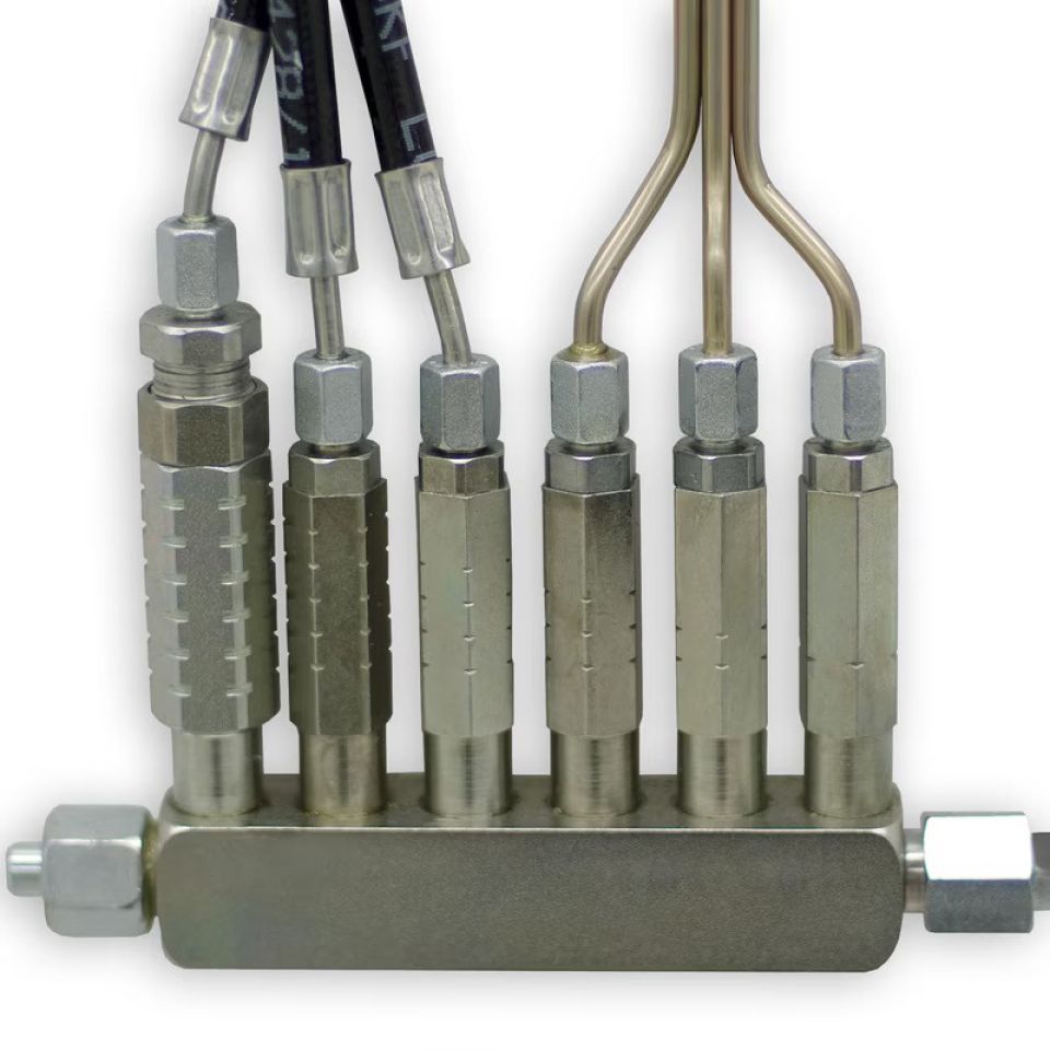 - Подходит для монтажных панелей с 2, 3 и 6 каналами в соответствии с количеством точек смазывания (1–6)
