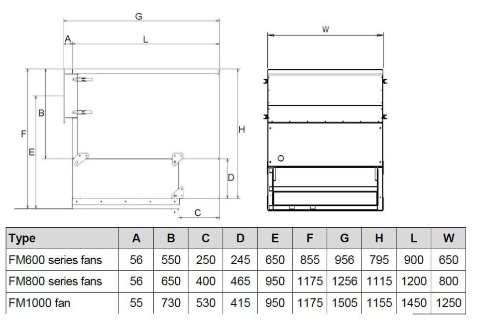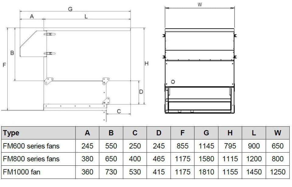 DUAL silencer for FM1000 series fan with air grille and rain cover