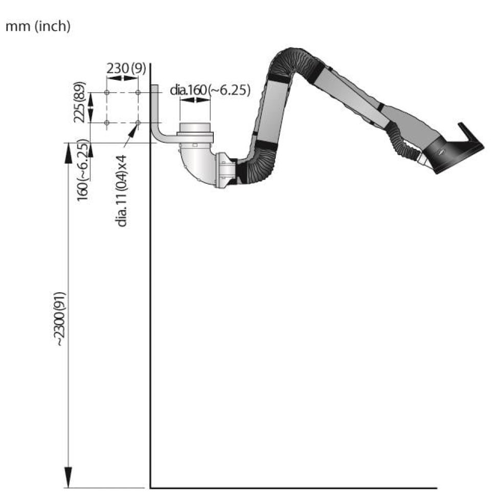 - Рукав поддерживается на жестком поворотном кронштейне и позволяет вращать изделие на 360 градусов