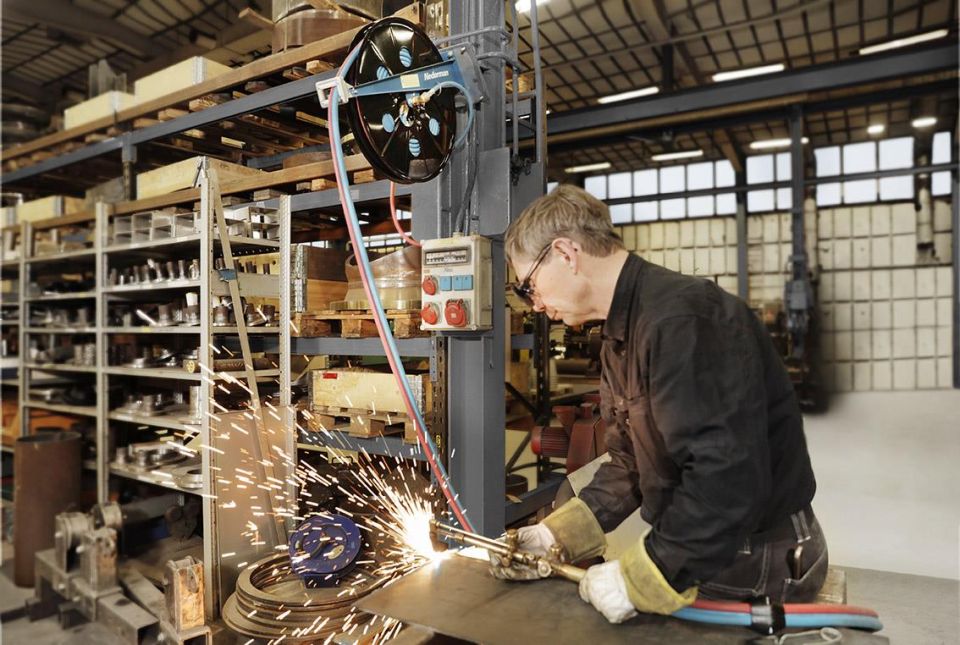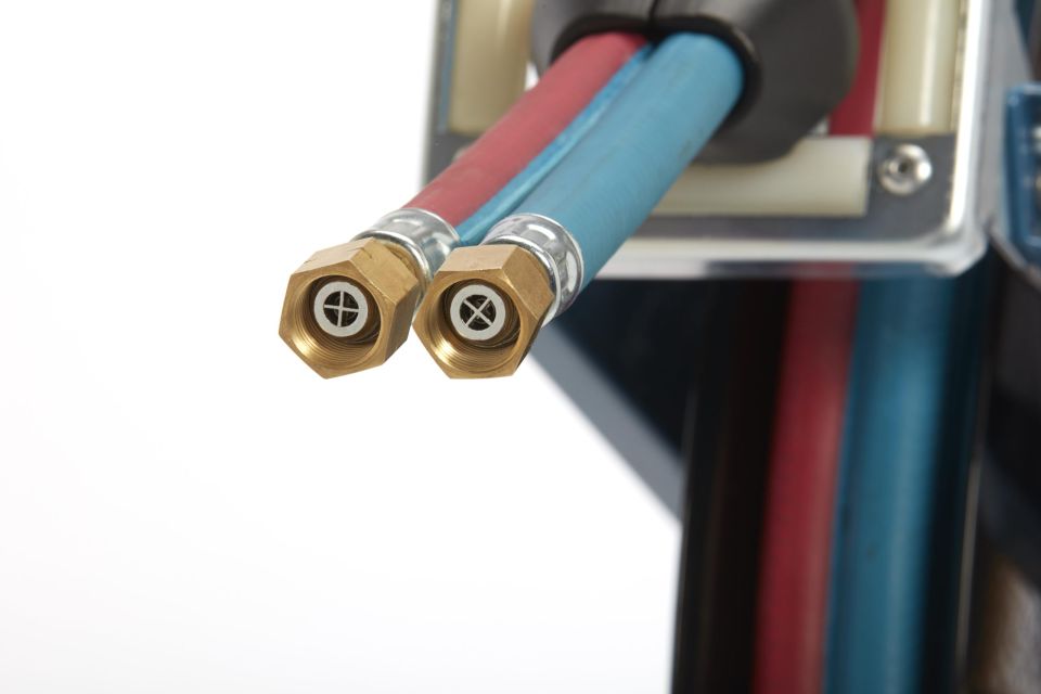 Специальная катушка для работы со сдвоенными шлангами для раздачи кислорода/ацетилена или кислорода/сжиженного природного газа (LPG). В этих условиях применения безопасность всегда на первом месте.