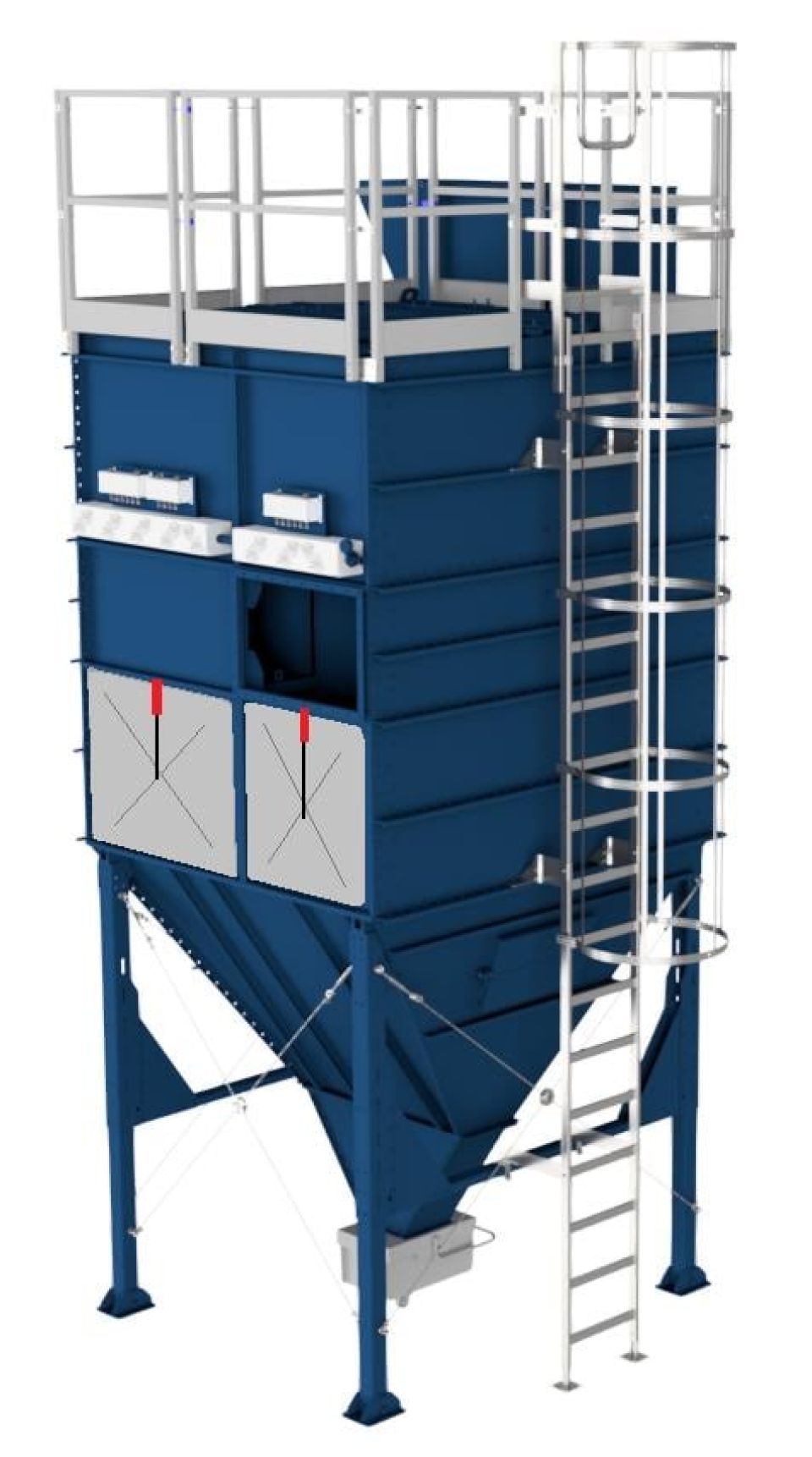 Все блоки LBP имеют большие размеры встроенных камер предварительной сепарации и направление воздушного потока сверху вниз, что снижает нагрузку на фильтровальные рукава, улучшает очистку и увеличивает срок службы рукавов.