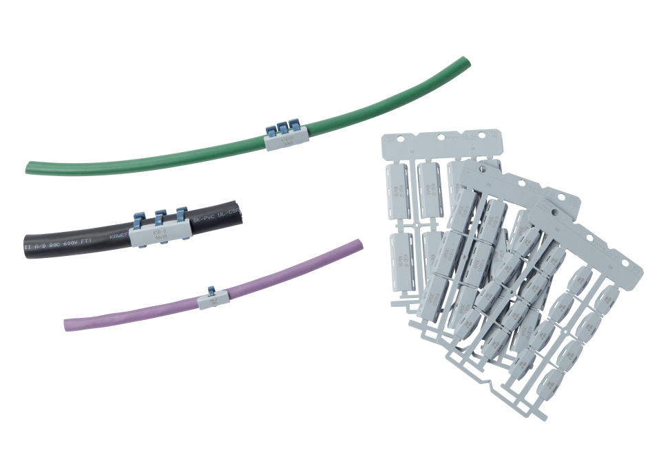 Таблички KSD для дополнительной маркировки максимально плотно прилегают к кабелю. Из-за узкой конструкции таблички кабельные стяжки следует затягивать с усилием не более 50–60 Н/5–6 кг. Поскольку при малых диаметрах кабеля усилия на планках резко возрастают, необходимо соблюдать диапазон применения.