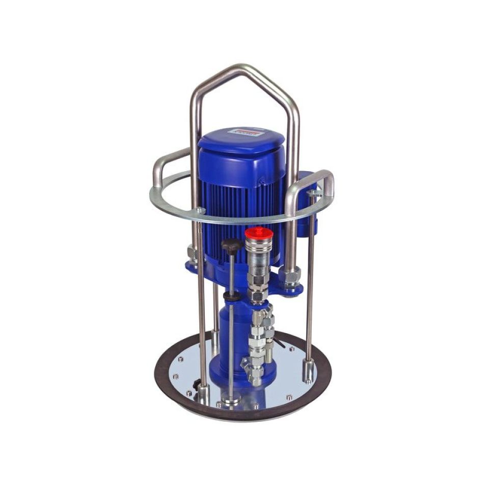 -             Для бочек с пластичной смазкой ёмкостью до 180 кг / 216 л (55 галлонов / 400 фунтов)Для использования насоса GTP-C просто включите главный переключатель, расположенный на распределительной коробке. Функциональное состояние отображается с помощью двух светодиодов. Зелёный светодиод горит при наличии питания, а жёлтый показывает готовность насоса к работе. При нажатии и удерживании кнопки на проводном пульте дистанционного управления насос GTP-C будет подавать пластичную смазку непрерывно. Пластичная смазка в бочке или резервуаре извлекается из-под прижимной пластины и подаётся с помощью насоса. Когда прижимная пластина достигает дна бочки, срабатывает датчик минимального уровня, автоматически выключающий насос. Замена пустой бочки упрощается посредством открытия клапана. Технические характеристики и преимущества - Полностью электрический привод