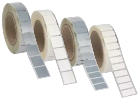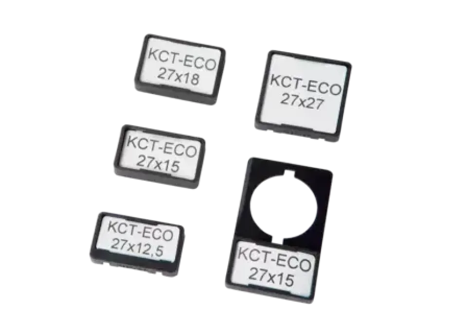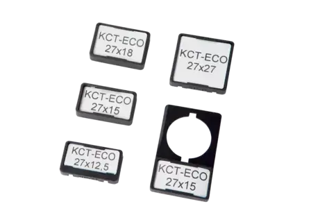 Маркировочные таблички KCT-ECO для маркировки кнопок имеют различные размеры и поставляются белого или серебристого цвета.