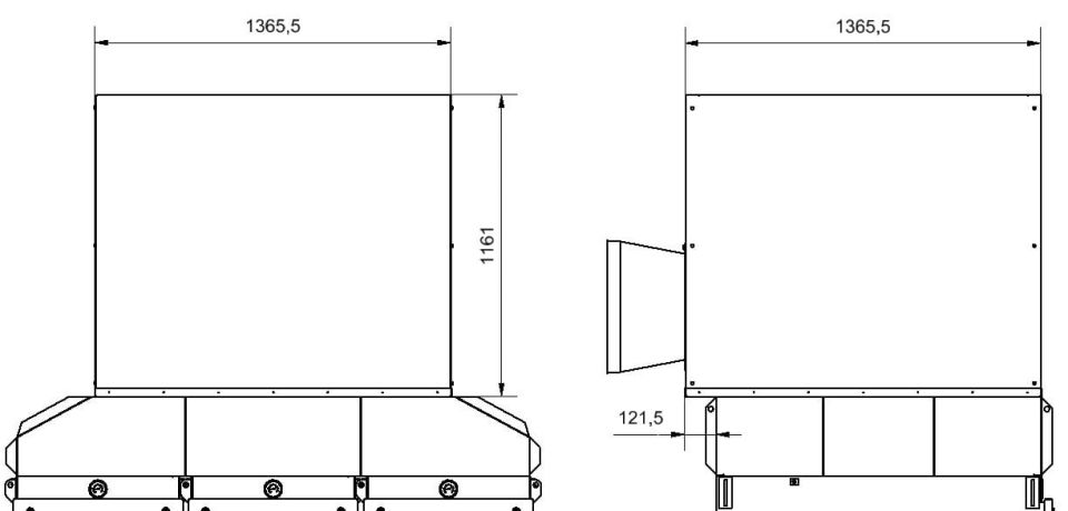 Уровень шума (дБ(А)) | <70 dB(A) @1,5 m from service side with optional fan enclosure and silencer |