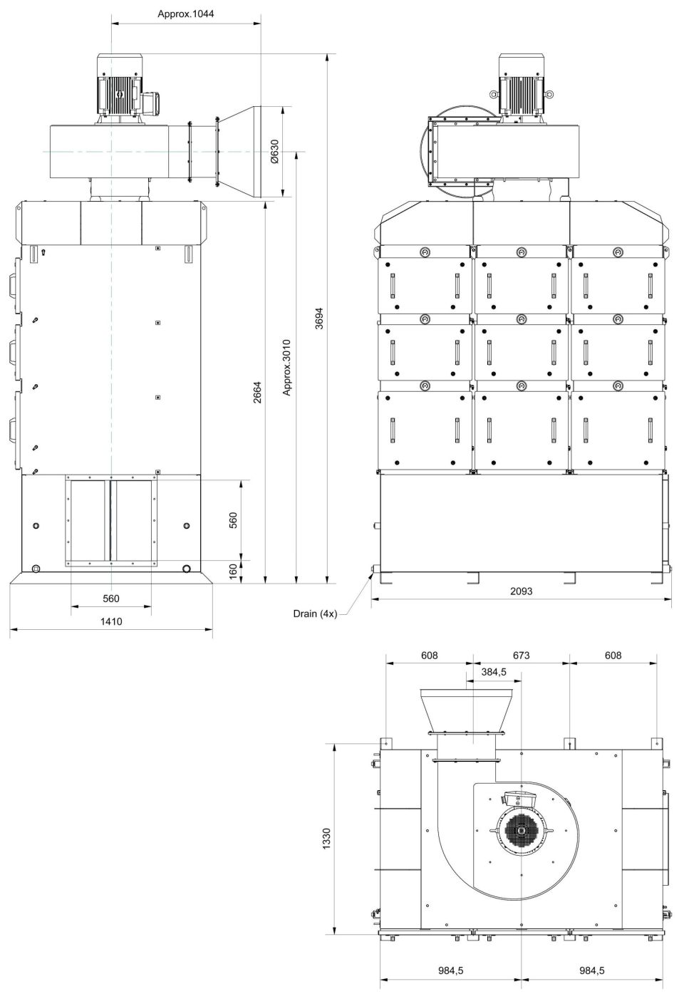 Установка Nederman FibreDrain® OMF 3×4000 в стандартном исполнении имеет трёхступенчатую систему фильтрации. Первая ступень состоит из фильтрующих кассет с применением технологии Nederman FibreDrain®. Компания Nederman предлагает широкий ассортимент фильтров различных типов для самых разных областей применения. Вторая ступень — HEPA-фильтр класса H13 с эффективностью 99,95 % по MPPS в соответствии с EN 1822. Все башенные установки Nederman FibreDrain® OMF конструктивно подготовлены к установке предварительного фильтра. Модель OMF 3×4000 оснащена радиальным вентилятором верхнего расположения.