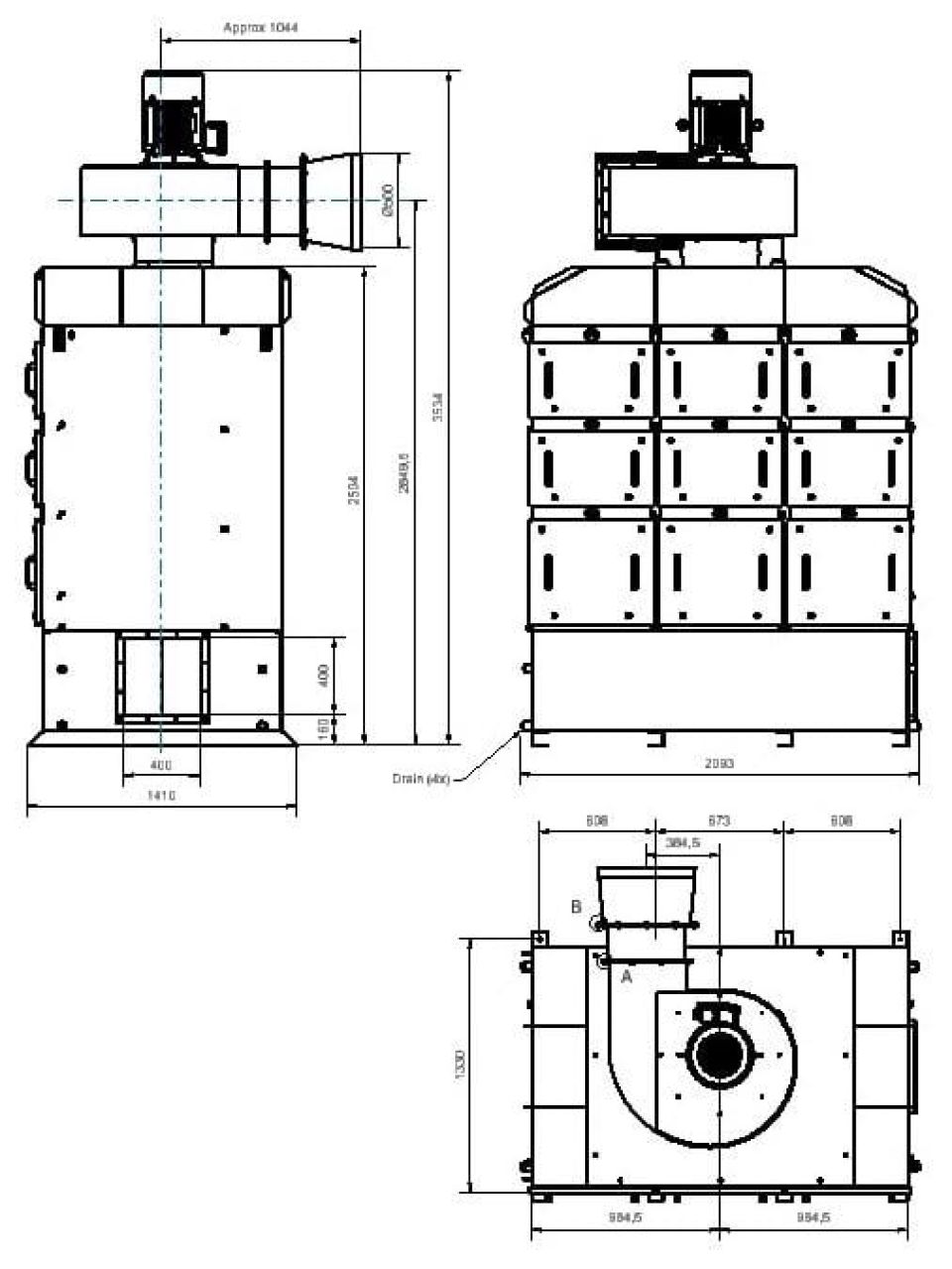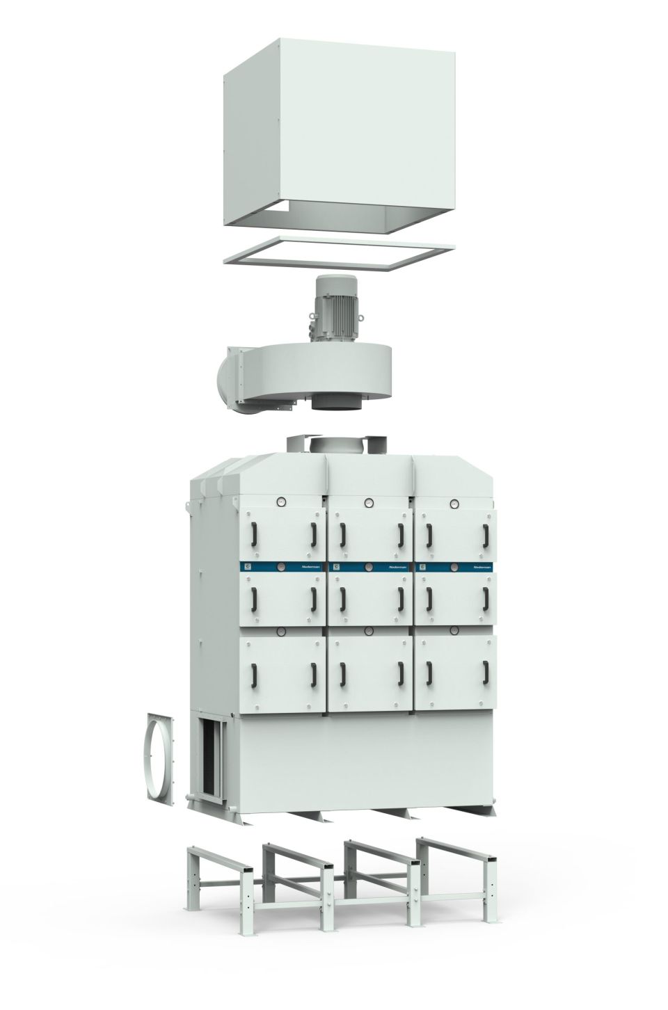 Nederman OSF 3×2000 имеет стандартные три ступени фильтрации, где первые две состоят из фильтровальных кассет с технологией Nederman FibreDrain®. Nederman предлагает широкий модельный ряд фильтров которые подходят для различных условий применения. Третья ступень состоит из HEPA фильтра класса H13 с эффективностью 99,95% для частиц MPPS согласно EN1822. Все корпуса установок Nederman OSF подготовлены для использования предварительного фильтра твердых частиц. OSF 3×2000 имеет встроенный сверху радиальный вентилятор.