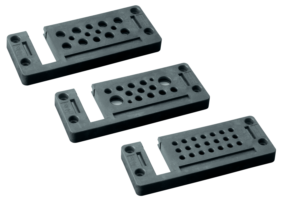 • Эта защелкивающаяся плита с кабельными вводами представляет собой сочетание системы KDP/N и KDL/E