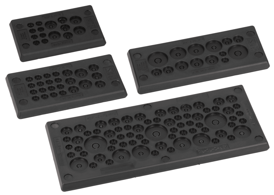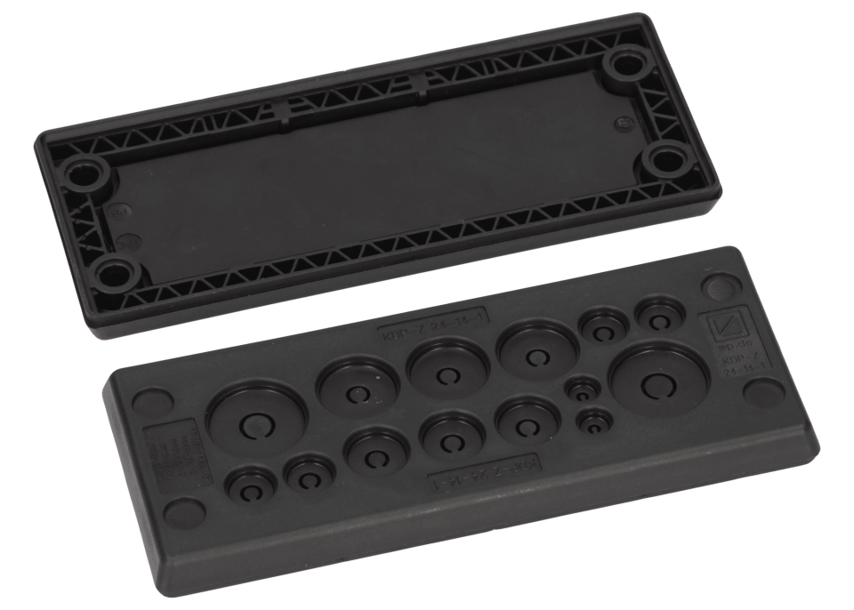 • Плоская плита с кабельными вводами из пластмассы с 2-компонентной конструкцией и отличными характеристиками