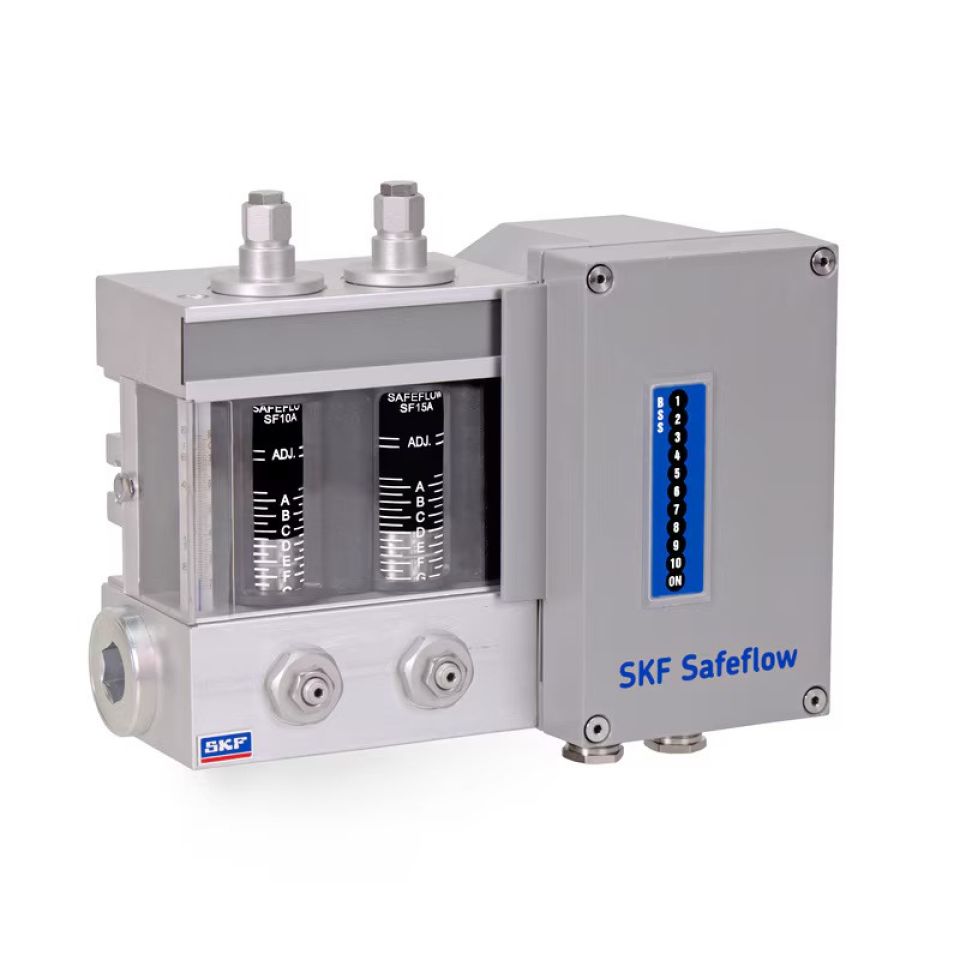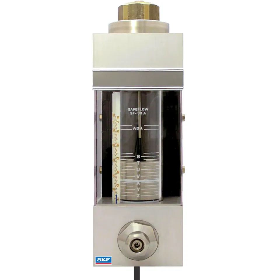 -             Для циркуляционных систем смазывания масломРасходомеры SKF Safeflow предназначены для контроля расхода, а также для индикации скорости потока. Каждый расходомер может быть индивидуально откалиброван в зависимости от вязкости масла и требуемого расхода. Производительность расходомера SKF Safeflow составляет от 0,04 до 56 л/мин (от 0,08 до 118 пинт/мин) на одну точку смазывания. Расходомеры могут быть сгруппированы в единые блоки (до 10 отдельных расходомеров), что позволяет уменьшить длину трубопроводов и упростить монтаж. Данные расходомеры обеспечивают точную индикацию и наглядный визуальный контроль благодаря своему принципу работы, основанному на использовании стеклянной трубки со встроенными калибровочными конусами. Технические характеристики и преимущества - Простая индивидуальная калибровка расходомеров с регулируемым расходом