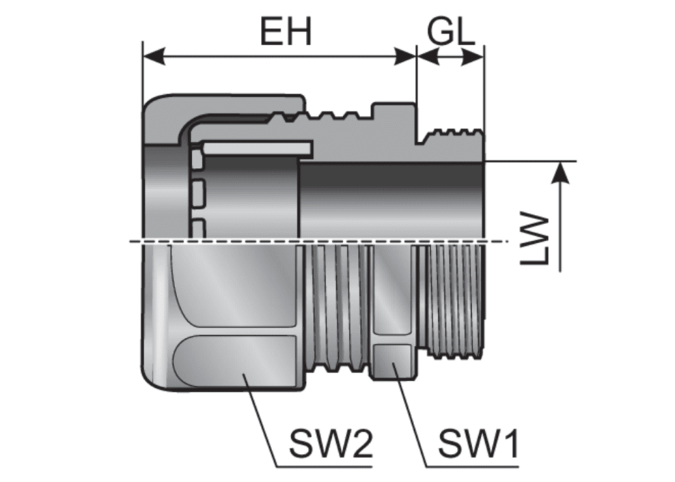 | Вид изделий | Номер для заказа | Цвет | УФ | Соединительная резьба | Диапазон зажима (LW) мм | Диаметр контактирующей поверхности мм | EH мм | GL мм | SW 1 / 2 мм | Кол. шт. |