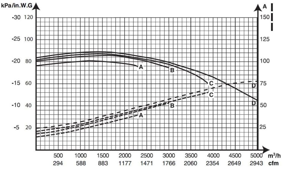 Производительность (макс. воздушный поток м3/час) «VAC 20-1500, 1500 при 20 кПа