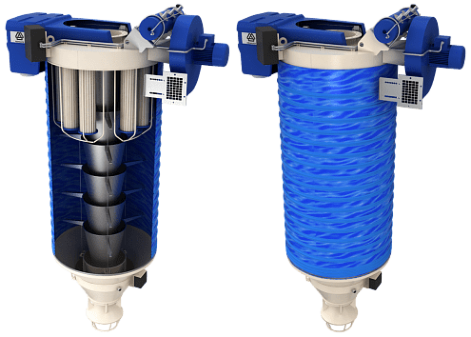 - нижняя часть – уплотнительный конус с полимерным покрытием, который герметично стыкуется с загрузочным люком. Уплотнительный конус оснащен запирающим конусом – закрывает высыпное отверстие загрузочного устройства перед поднятием его в верхнюю позицию и предотвращает попадание частиц пыли в окружающую среду.